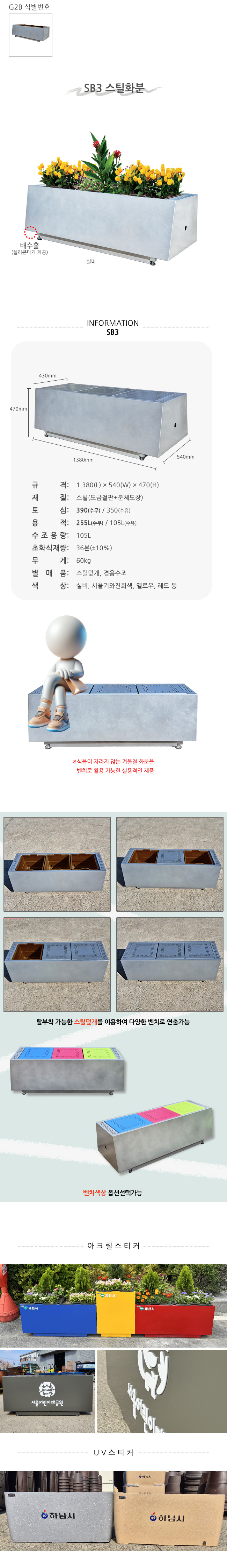 SB3 벤치형 스틸화분 상세정보