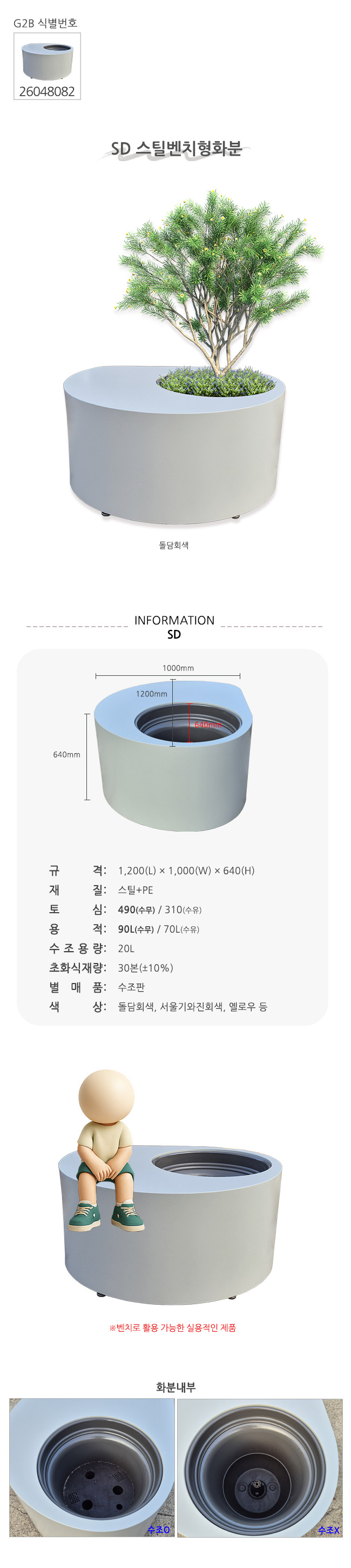 SD 벤치형 스틸화분 상세정보